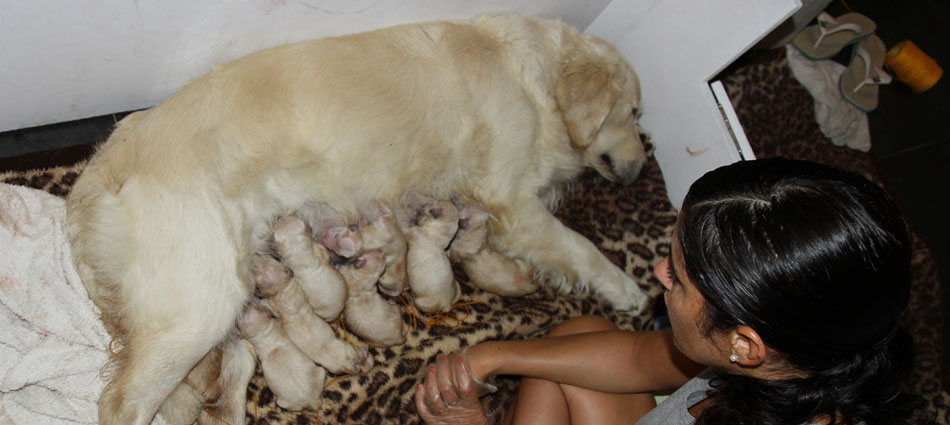 Nuestra preciosa Golden Retriever Maggie ha dado a luz con varios días de adelanto. El parto ha transcurrido con normalidad.