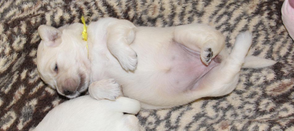 Nuestros cachorritos van creciendo muy bien. Están todo el día colgados de la teta de su madre.
